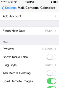 Tap Mail, Contacts, and Calendars in the Settings menu.