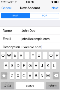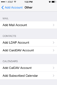 Tap Other in the Add Account menu of mail account types.