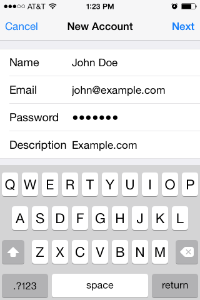 Verify all of the information for your account, and then tap Next to proceed to the next screen.