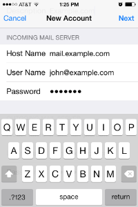 Enter information for your incoming mail server and tap Next.